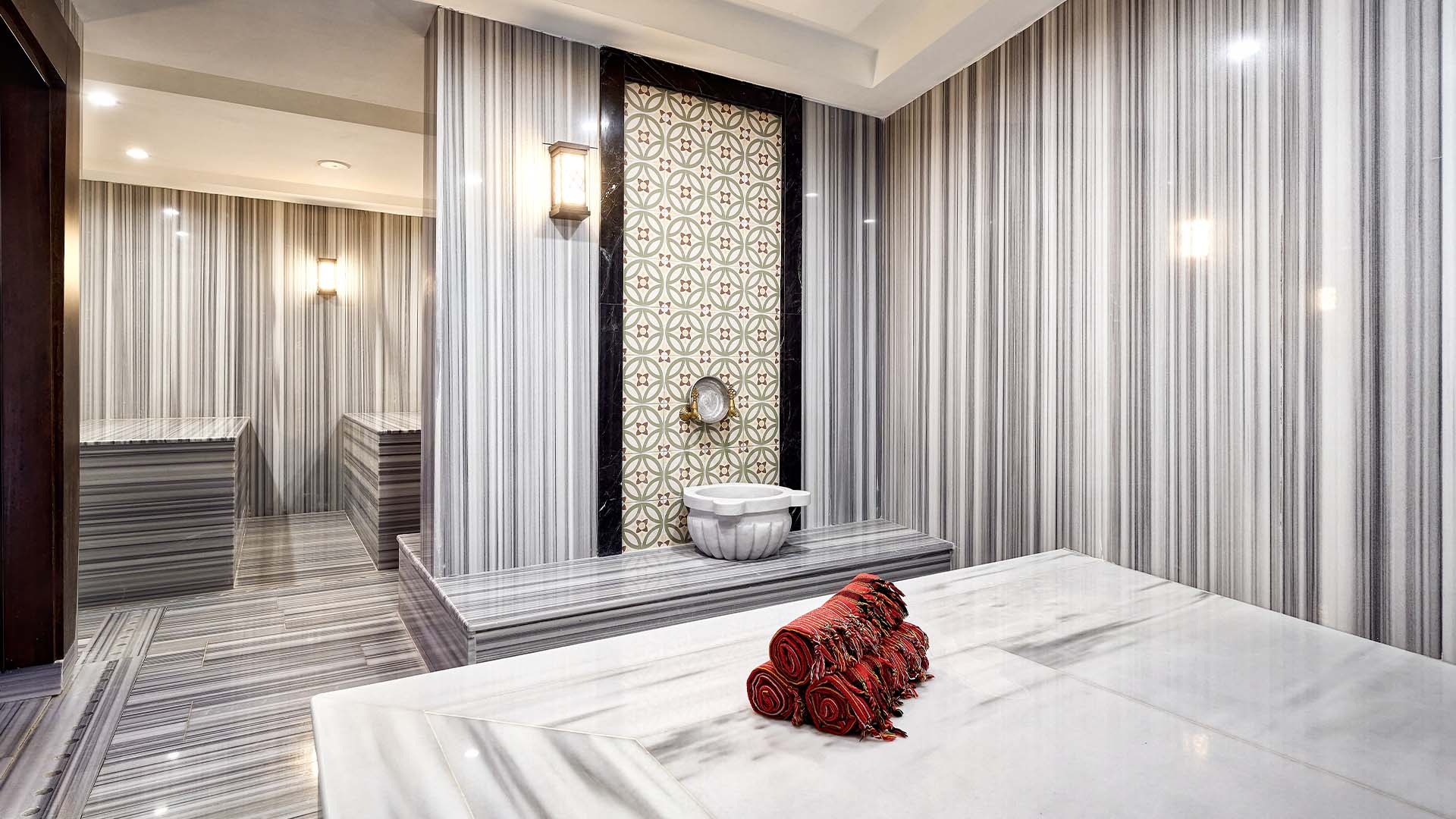Türk hamamı (Hammam), sauna ve buhar odamızda vücudunuzu ve zihninizi arındırarak ve yenileyerek sağlığınızı iyileştirin. Nihai konforunuz için tasarlanmış huzurlu dinlenme alanlarımızda iç huzurunuzla yeniden bağlantı kurun.