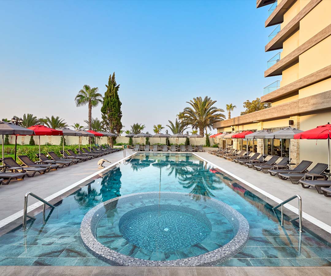 Elysée Rive Hotel'in plaj ve havuz tesislerinde rahatlama ve maceranın mükemmel bir karışımını deneyimleyin. Geniş ve ferah iki havuzumuz, konukları kristal berraklığındaki suların serinletici kucaklamasında güneşlenmeye davet ederek hem sakin yüzmeler hem de hareketli eğlenceler için ideal bir ortam sunmaktadır. Çocuklar, kendilerine özel bir bölümde keyifli vakit geçirebilir ve küçük konuklarımız için güvenli ve eğlenceli bir ortam sağlanır.